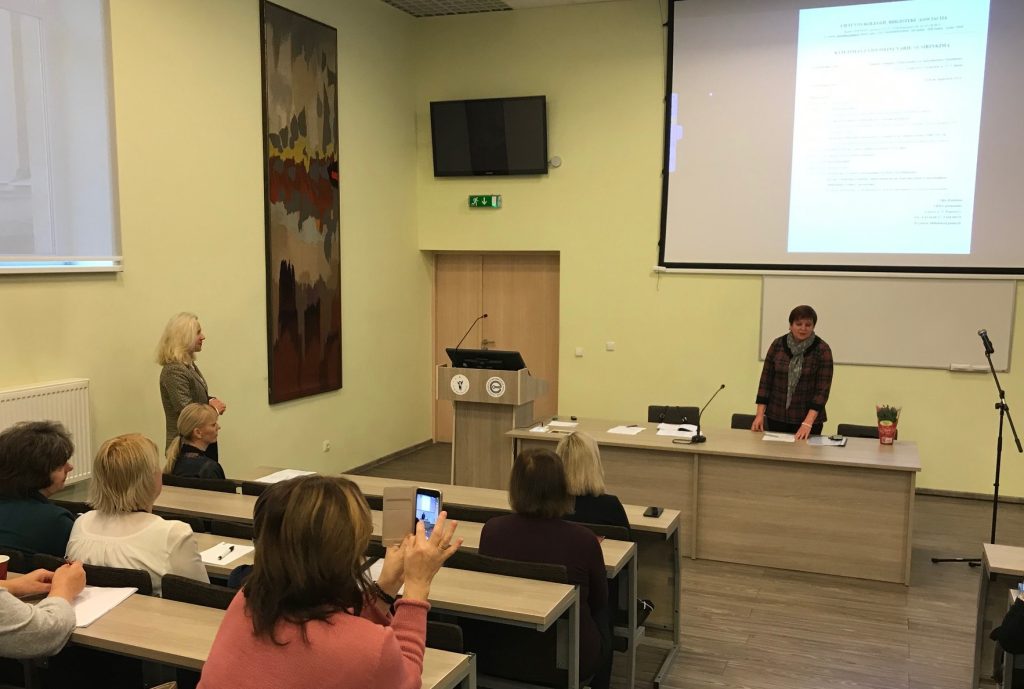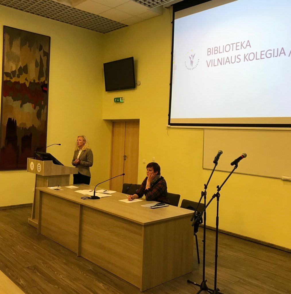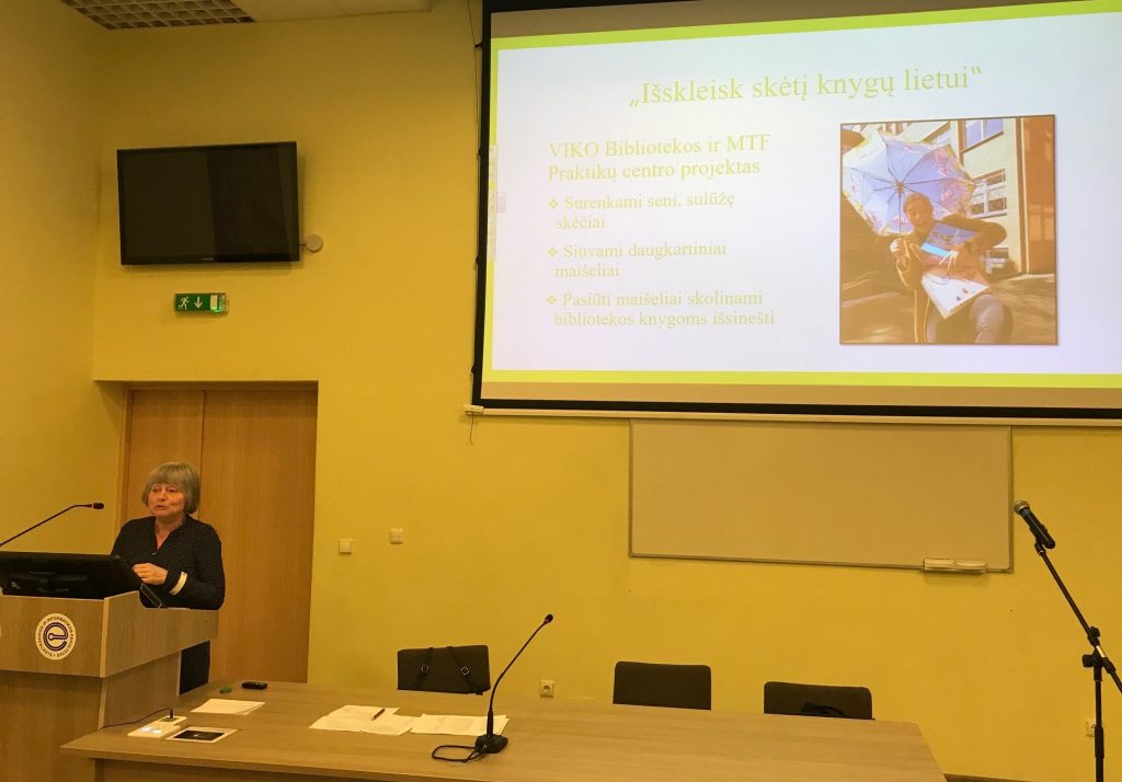 Vilniaus kolegijos bibliotekos vadovė Kristina Blaževičienė pristatė VK bibliotekos struktūrą, misiją, viziją bei ateities planus. MTF bibliotekos vedėja Virginija Pleskienė kalbėjo apie šiais metais bibliotekoje vykdomą projektą „Išskleisk skėtį knygų lietui“, kuris yra artimas pasaulyje paplitusių „Žaliųjų bibliotekų“ („Green Libraries“) idėjai bei skatina tausoti aplinką.