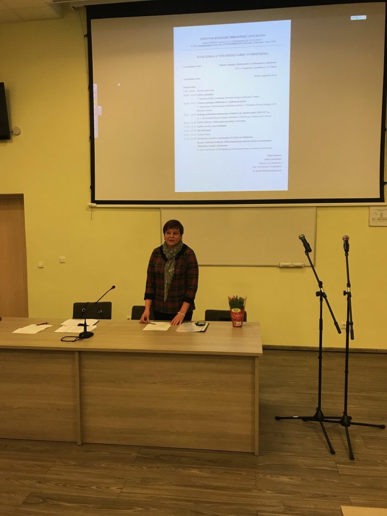 2018 m. lapkričio 16 d. Vilniaus kolegijos Elektronikos ir informatikos fakultete vyko Lietuvos kolegijų bibliotekų asociacijos (LKBA) visuotinis narių susirinkimas.