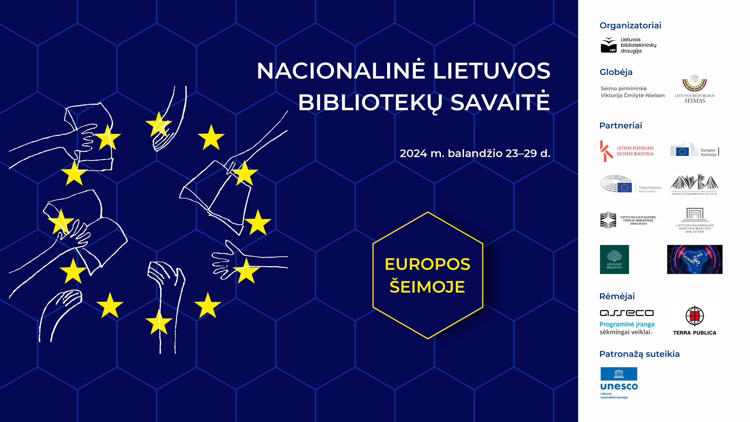 Bibliotekoms skirtas metinis renginys Nacionalinė Lietuvos bibliotekų savaitė šiais metais vyks balandžio 23-29 d. Ši savaitė yra puiki proga pristatyti bibliotekų veiklą ir iniciatyvas bendruomenei. Šių metų tema – „Europos šeimoje“, akcentuojanti vienybę, lygybę ir vertybes, ši tema pasirinkta norint paminėti Lietuvos įstojimo į Europos Sąjungą 20-metį. Tai puikus momentas prisiminti, kaip Lietuva jungiasi prie platesnio kultūrinio, informacinio ir kūrybinio konteksto. ES narystė leidžia mums dalyvauti demokratiniuose saviraiškos procesuose, skatina tvaresnį gyvenimo būdą ir nuolatinį bendradarbiavimą tarp asmenų, institucijų ir šalių.