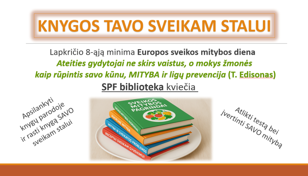 Sveikatos priežiūros fakulteto bibliotekoje atidaryta teminė knygų paroda, skirta lapkričio 8-ąją minimai Europos sveikos mitybos dienai.