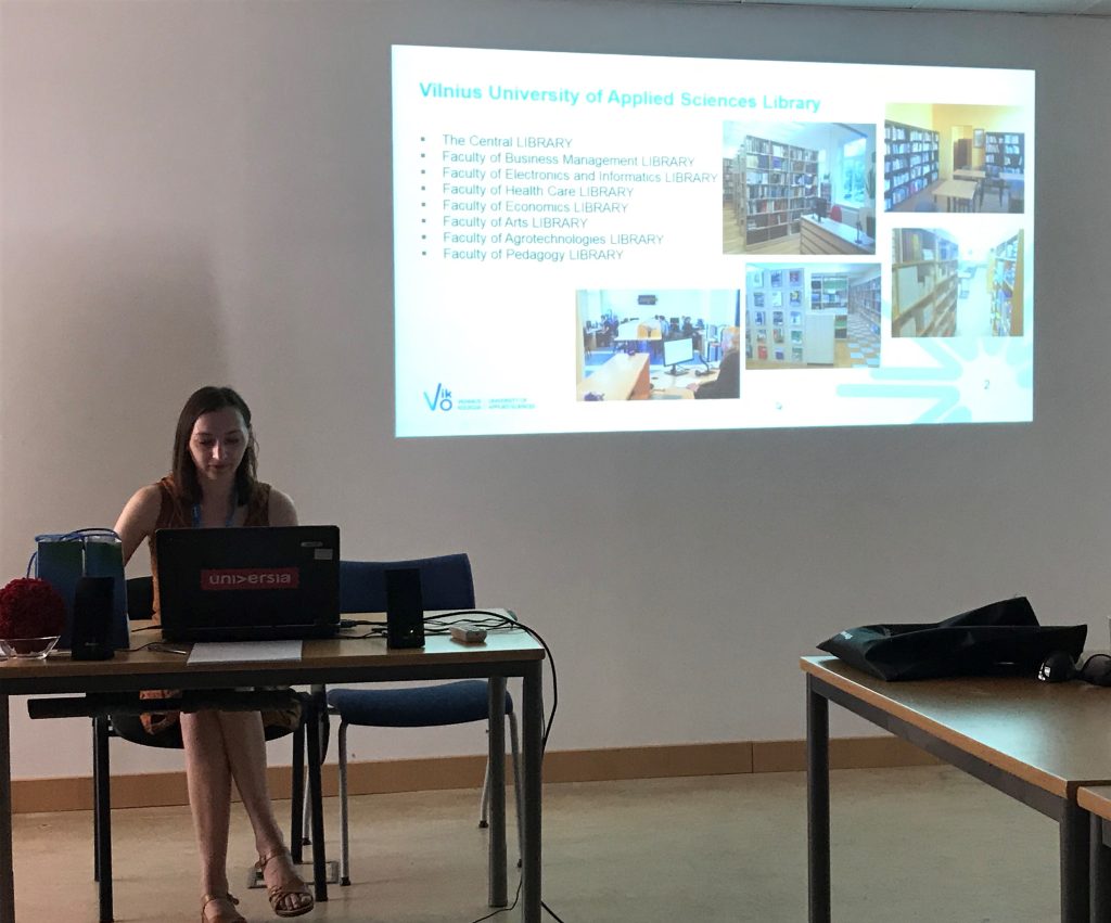 SPF bibliotekos vedėja mainų savaitėje pristatė Vilniaus kolegiją ir vieną svarbiausių institucijos padalinių – biblioteką, supažindino su bibliotekos paslaugomis, resursais, vykdomais vartotojų mokymais bei bibliotekoje rengiamais projektais.