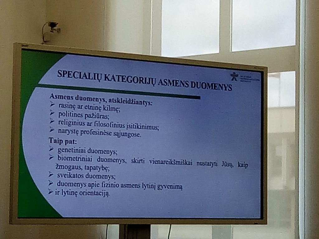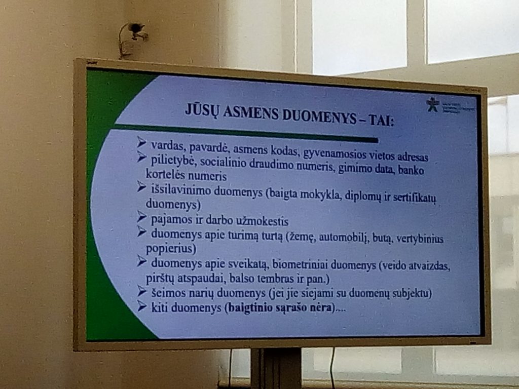 Pranešimas ir diskusija vyko tema „Asmens duomenys: kas tai ir ką turėtume žinoti“ (lektorė Dovilė Almanienė, Valstybinės duomenų apsaugos inspekcija).