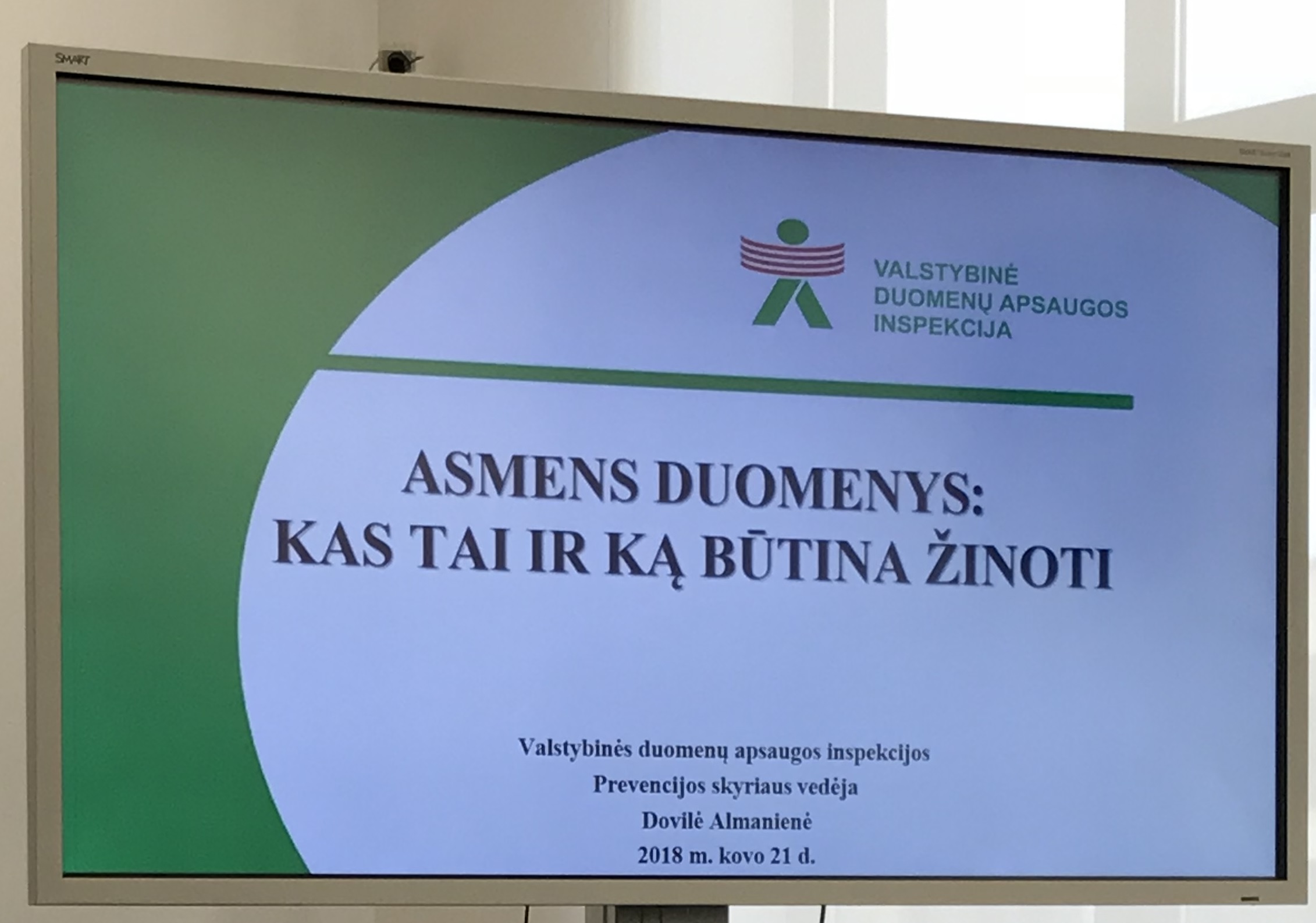 Pranešimas ir diskusija vyko tema „Asmens duomenys: kas tai ir ką turėtume žinoti“ (lektorė Dovilė Almanienė, Valstybinės duomenų apsaugos inspekcija).